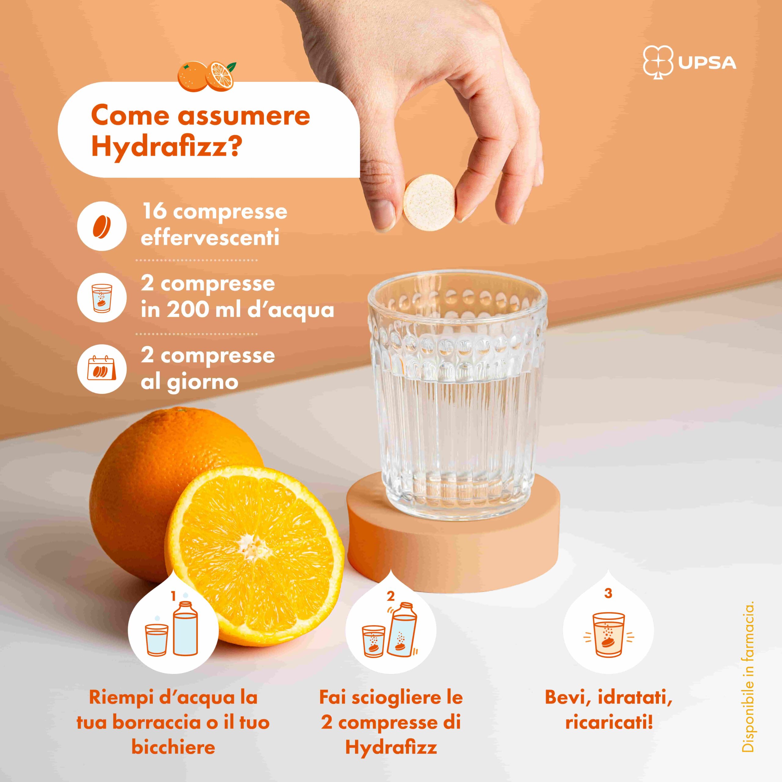 Ecco perché è importante non solo bere a sufficienza, ma anche ottimizzare l’assorbimento dell’acqua. Associare una corretta assunzione di liquidi all’uso delle compresse Hydrafizz consente di potenziare l’assorbimento idrico e migliorare l’equilibrio elettrolitico dell’organismo, per un’idratazione più efficace ogni giorno.